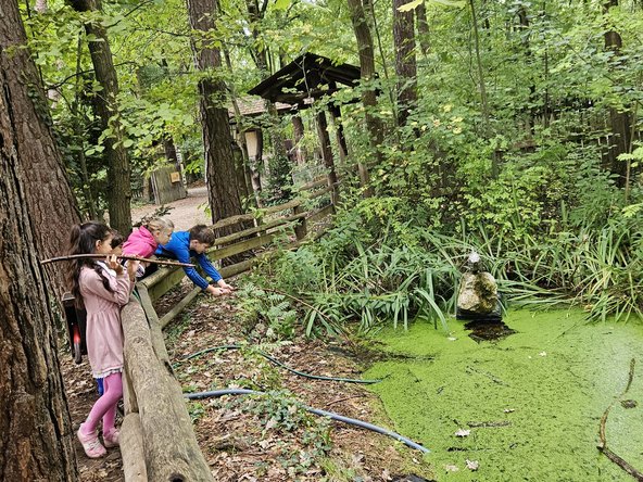 Das Thema Natur und Nachhaltigkeit stand diesmal im Fokus. Die Kinder verwendeten Naturmaterialien, Fabe und viel viel Papier. Wir haben eine eigene Führung zum Thema "Seerose, Lotus und Frosch" im Botanischen Garten in Erlangen bekommen. Cool - eine richtige Gartensafari...