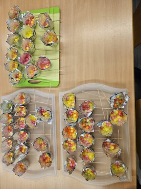 Praxisbeispiel: wir bereiten leckere Alternativen wie Obstspieße mit Dip, Waffeln, u.a. zu - Frischkost ist Heilkost
